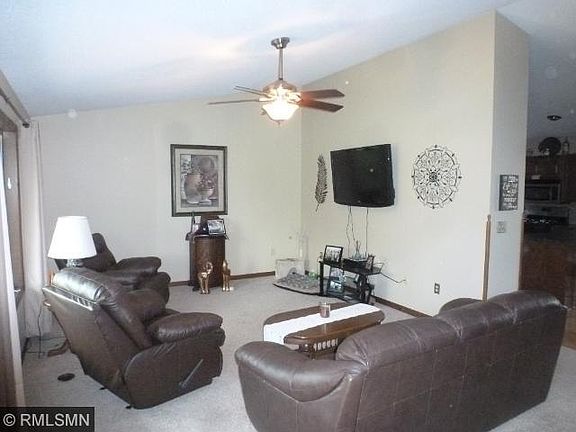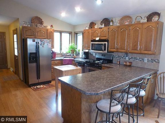 Extremely well cared for 4 bedroom, 3 bath rambler across the road from the Spring Valley Golf Course. Features private master bath with tile floors. Open kitchen/dining/living room area with vaulted ceilings. Kitchen has updated counters & tile back splash. Large family room with wood stove and wet bar. Lower level walkout. Deck and stamped concrete patio overlooking wooded back yard. Steel siding. Heated 3 car garage. You won't be disappointed!