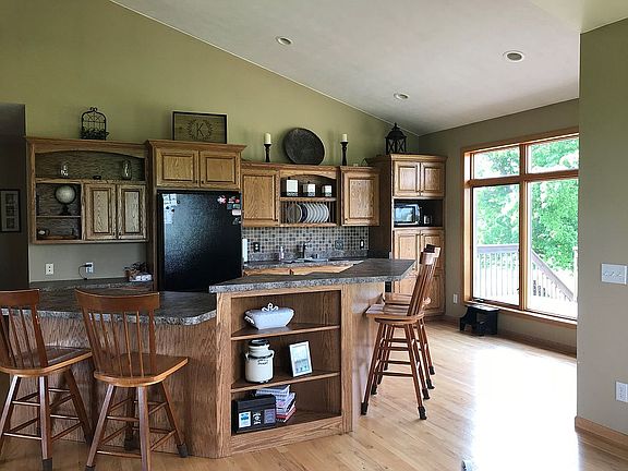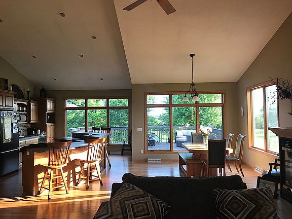 Beautiful County living just one mile from town. Close to schools. Heated 3 car garage that is dry walled and finished floors , In-floor Heat, Central Air, Solid Six Panel Doors throughout the house, 9' ceilings in finished basement, Surround built in Speakers in upstairs and outside. 3,000 sq. feet finished living space. Beautiful landscape and well maintain lawn with a raised bed garden. Security camera system with no monthly dues! A beautiful wet bar and gas fireplace finish the living room