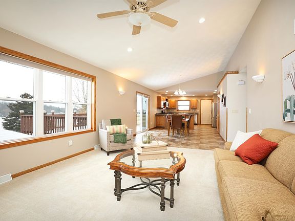 Situated on 2.6 +/- acres this walk out ranch features unobstructed views of the rolling countryside. Step inside to an open concept floor plan with volume ceiling GR, dinette with patio doors to large deck, fully applianced kitchen stocked with cabinetry, 2 sizeable main floor bedrooms, and a common full bath. The LL is finished to include FR with walk out patio doors, 3rd bedroom, full bath, den, and laundry area with storage. Additionally a 3 car attached heated garage and outdoor enclosed gazebo with hot tub complete this beautifully maintained home. Showings start 12/10/2021.