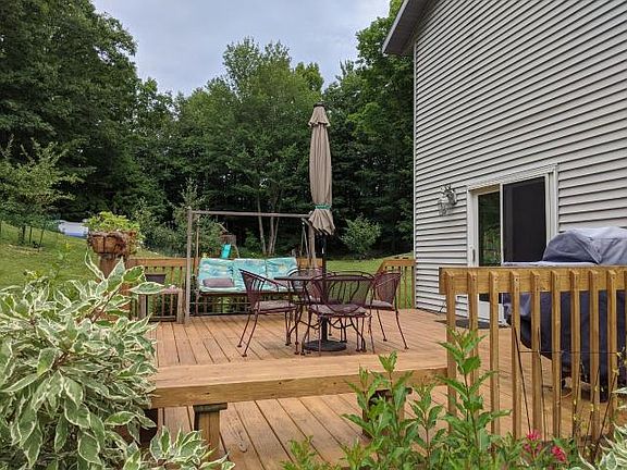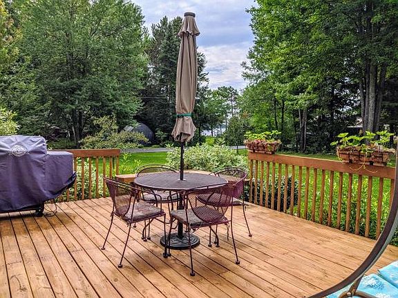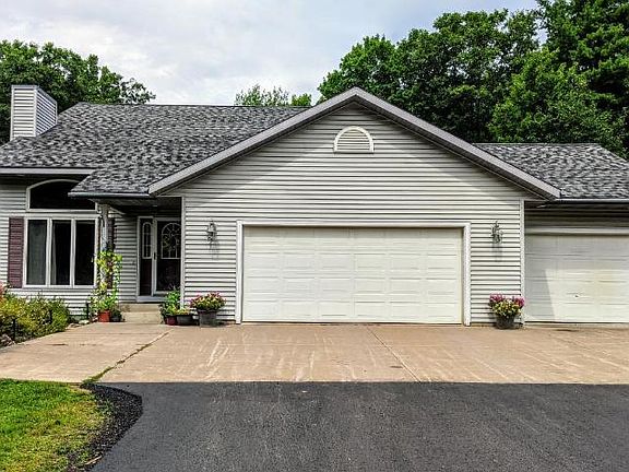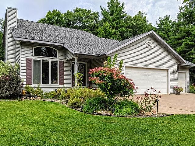 Here, enjoy peace and privacy minutes from town on 2.2 acres with 100 feet of frontage on the Phillips Chain of Lakes! This 3 BR, 4 BA home speaks quality inside, with all the amenities you are looking for. This home has a spacious, open feel. The Great Room has a gas fireplace, plenty of windows, and a vaulted ceiling with oak tongue and groove. The kitchen offers hickory cabinets, island with seating, and a dining area with sliding doors to the sun deck. There is convenient main floor laundry and a king size Master Suite with walk in closet and full bath. There are 2 upper bedrooms with full bath and library, and the lower level has a dry bar, family room, full bath and bonus room. There is a 3 car attached garage and shed with loft, for added storage. If you crave the outdoors this fully landscaped property has an apple orchard, fruit trees, garden and loads of perennials and berries. There is a fire pit and walking path through the woods to the water. It's a MUST SEE!