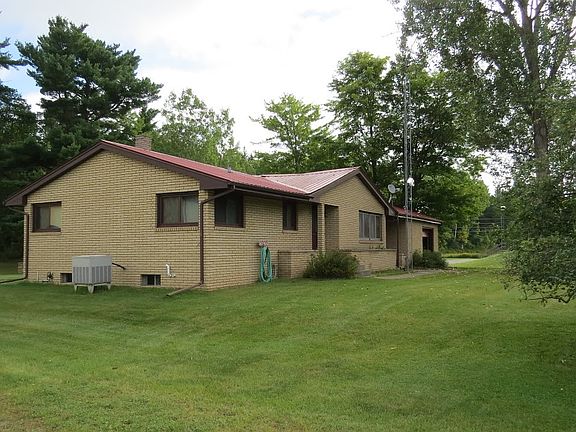Completely move in ready. Very well taken care of and maintained Country home on 1.65 acres. Guest house, 3 car detached garage, and LARGE insulated 45x65 building which has 2 sources of heat and bath that needs to be updated with its own drainfield etc. behind the building. This building has 16' doors to house a SEMI if needed or store LARGE RVs. The home itself is a BRICK ranch and brick was tuck pointed 2 years ago and in immaculate condition. Newer kitchen updates. Nice large living room. FULL basement with updated electric systems. Newer windows and appliances. CENTRAL AIR! Outdoor BBQ picnic area. Just a great setting in the country. Close to Shakey Lakes and the Menominee River boat launch is just a mile down the road or so. Guest house is ready for family or could be a rental home too. So much to offer and this does have some Commercial possibilities if desired as the Big Building could be a work shop or manufacturing shop of some nature.