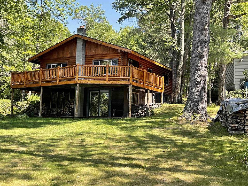 Log Cabin on the WI river!! Great get away or year-round home. Beautiful half acre lot thats flat out to the water. On the River with quick access to Lake Alexander for all your waterfront fun, boating, fishing,or relaxing. Main floor is open concept with Patio door leading to a wraparound deck. L-shaped kitchen offers lots of cabinets and counter space, bright dinette area and living room all under a vaulted ceiling with log beams and large windows looking out to the water. 2 bedrooms are ample size, along with a full bath make up the main floor. Making your way downstairs there is wood planking freshly installed. There is a nice second bathroom. The rest is unfinished and could be turned into another bedroom and family room.