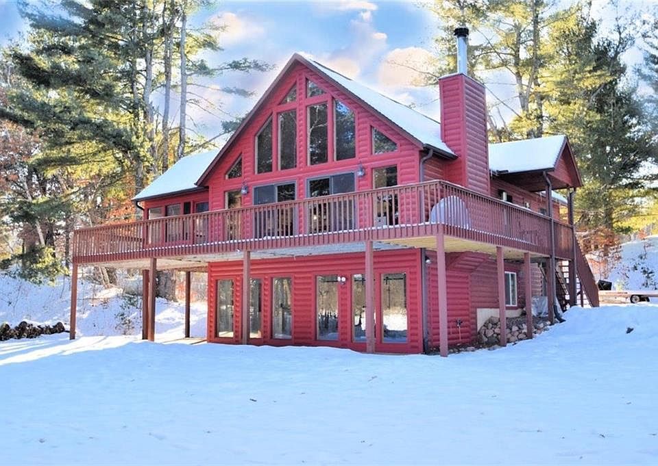 Stunning log sided 4 BR, 3 BA chalet has been meticulously maintained & awaits for you to arrive down a long private drive w/all quality builds! Tastefully decorated & sold completely turn-key w/all furnishings, 2 UTV's, snowmobile included and all you need to just show up and enjoy. Gorgeous pine interior, soaring ceilings, fieldstone wood burning fireplace, wood floors, large greatroom, island w/seating, master suite in loft, & recently finished lower level includes ledgestone LP gas, pine barn doors, laundry and w/o to the lake. Screen porch, wrap around deck, all leads to an amazing lot level w/234' of sand frontage, 2.93 acres, east facing, natural landscaping & established firepit. Top notch mechanicals w/new HVAC, tankless H2O heater, & Culligan filter system. Enjoy a quaint 130 crystal clear lake ideal for swimming, boating & fishing! 2 car det. gar. for all the toys & storage you need. ATV/UTV right out your back door, close to Minong, and east of Danbury!