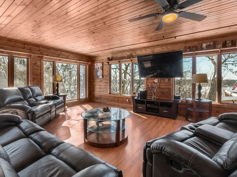 Architecturally Perfect! This beautiful exposed ranch sitting on over 2.5 Acres has incredible Whitewater lake views with a unique craftsman feel throughout. Featuring open floor plan that includes family room and great room with walls of windows, fireplace on both levels, main floor laundry, family room with walk out deck access to capture both sunrise and sunsets on your private deck. Newly remodeled lower level bedroom or optional rec room has full bath with walk out access to large screen porch. 4 car insulated garage with space heaters. Top of the world living at its finest!
