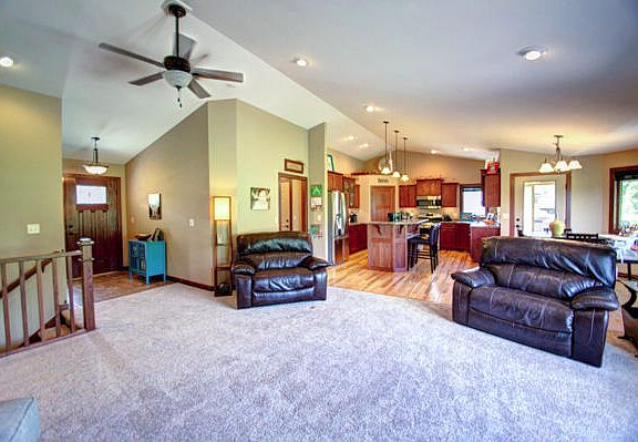 SPACIOUS 4 BEDROOM HOME BUILT IN 2013 WITH OPEN FLOOR PLAN AND VAULTED CEILINGS. MAIN FLOOR CONTAINS KITCHEN WITH HARDWOOD FLOORS AND WALK-IN PANTRY, MUDROOM, LAUNDRY ROOM, LIVING ROOM, 2 BEDROOMS, BATHROOM, AND MASTER SUITE. LOWER LEVEL HAS FOURTH BEDROOM AND GREAT ROOM WITH FULL WET BAR. LOWER LEVEL ALSO INCLUDES FINISHED OFFICE AREA, AND PLENTY OF UNFINISHED STORAGE. OUTSIDE INCLUDES ATTACHED 3 CAR GARAGE, IN-GROUND IRRIGATION SYSTEM, SCREENED PORCH, STAMPED CONCRETE PATIO AND FIREPIT, AND PLAY SET.