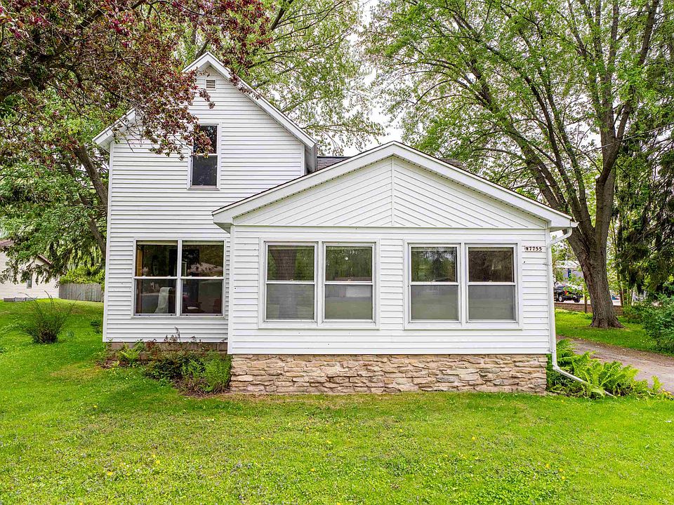 GPS Address W7755 Island St. This 2 bedroom bungalow is situated on an oversized lot and offer 30x22 garage! The main floor features HUGE combination kitchen & dining area that is open to the front LR with hardwood floors, main floor bedroom, updated full bath and mudroom off back covered entry with FF laundry and enclosed front porch. The upper level consists of a large bedroom and a versatile room that could be used as an office, closet, or storage space. Updates per the Seller include: roof, siding, windows, furnace, and much more! Located close to Baker Park Boat launch and River dining!