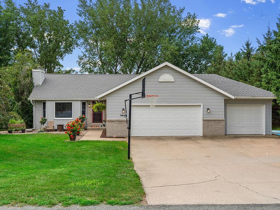 Charming walk-out ranch home nestled on a spacious 0.55-acre lot. This home features a desirable 3.5 car garage. Step inside to discover open concept living with gleaming hardwood floors and a cozy stone fireplace.Renovated kitchen with modern appliances and ample counter space. Relax in the bright and airy 3-season porch after a long day. Large primary bedroom, complete with a private bath and double closets for all your storage needs. The finished lower level offers additional living space, including a bar, full bath, family room, and rec room, along with a convenient 4th bedroom for guests or extra privacy. Backyard is perfect for outdoor gatherings, gardening, or simply enjoying the fresh air. Don't miss this opportunity to make this wonderful home yours.