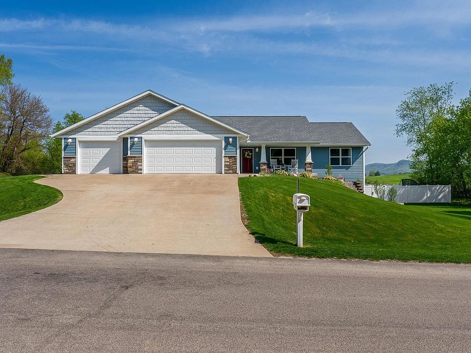 Beautiful 4-5 bedroom home in August Prairie. Zero entry, fenced yard, walk-out basement, built-in book cases, tons of storage space. Main floor laundry, split bedroom floorplan. Private backyard with country views! Close to parks and easy access to HWY 53.