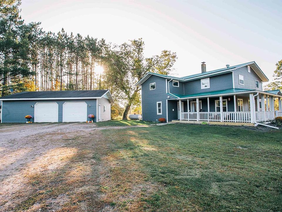 Country charm! This rural property sitting on five acres is ready for its next owner. The open concept 3 bed/ 2 bath farmhouse offers over 2300 sq'. The main level has a custom kitchen, spacious living room, full bathroom, and main floor laundry. On the upper level you will find three large bedrooms with a private den off the master and another full bath. The hardwood floors throughout the house are absolutely beautiful! The exterior has been freshly updated with vinyl siding on both the house and detached two car garage and the 26'x45' pole shed is great storage. ATV trails and thousands of acres of public hunting land surround the property. Listing of this nature are hard to come by. Act fast!