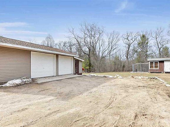 4 Bedroom/2 full Bath home with 3 car detached garage on 6 wooded acres in the country. Great hunting (Largest Whitetail taken by bow in the state just minutes from this property) or wildlife viewing out your backdoor. Newer roof on house & garage, garage doors/openers, boiler, windows, some flooring, insulated attic, 220 in garage, ceiling fans, dog kennel/pad. Chicken coop stays. Apple trees, Pear trees, and raspberries and plenty of room for a big garden all bonuses. Close to Wild Rose and 20 Min. from Waupaca. ALL appliances stay. Call Bill tate at 715-802-3515 for your private showing today!