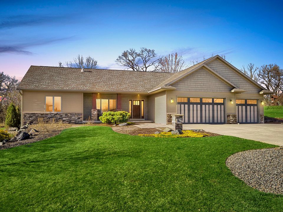 If you have been waiting for the right opportunity to move into August Prairie, the time is now! This custom built ranch was designed to entertain and also offers privacy w/the extensive, professionally landscaped yard (w/built-in fireplace, gas grill, pergolas, hydrawise/smart irrigation, etc.). The main floor features an open concept kitchen(ss appliances, granite counters), custom built-in dining bench seat, spacious living room (gas fireplace,built-in entertainment center) all on beautiful hickory flooring. Addt'l features include: split master set up, Jack-n-Jill bath, main floor laundry, heated garage w/dual access to basement, massive entertaining space and built-in bar in LL, office, ample storage, custom light fixtures and so much more!