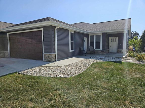 This stunning 3 bed/3 bath/2 car ranch condo offers high-end finishes & carefree living. The no-step entry & ADA-compliant main floor feature maple floors, a spacious kitchen with quartz island, SS appliances & dining area. Relax by the stone-tiled gas fireplace or in the screened porch with peaceful views. The primary suite includes a tiled walk-in shower, double vanity & laundry-connected closet. The finished LL features walk-out doors to a stamped concrete patio, family room, bed, bath & storage--ideal as a separate living space for a family member. There's also ample unfinished space to expand & build equity. Enjoy Rock Lake access via the private pier, plus exceptional soundproofing for quiet comfort near the freeway. Welcome home! No worries or outside maintenance.