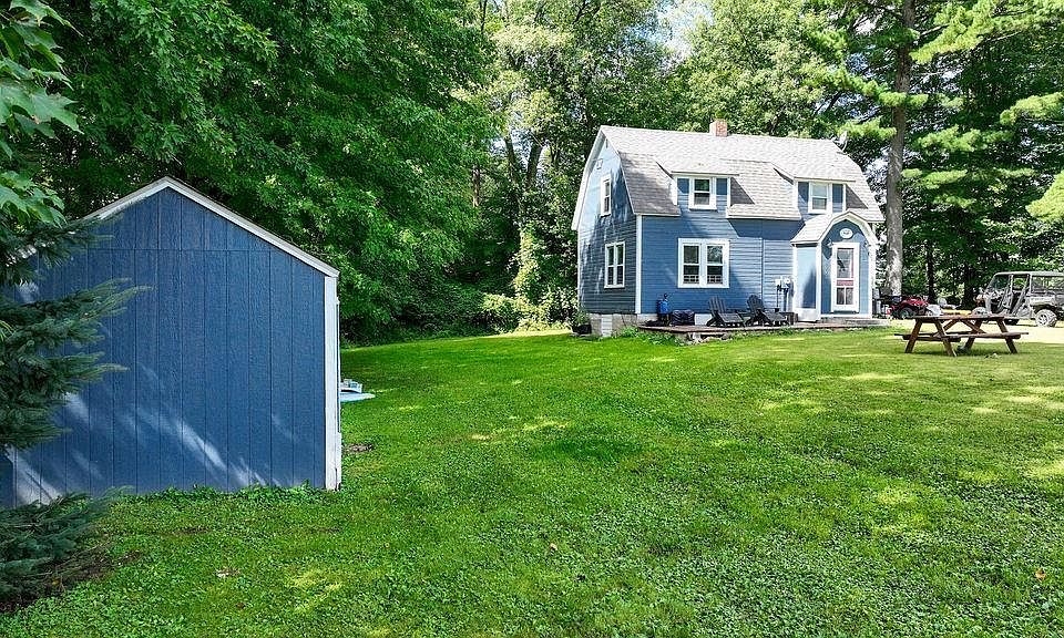 This is truly a story-book cottage/cabin that comes FULLY FURNISHED and is located on a pristine setting that looks like it belongs in a movie! You will immediately feel the charm and care that the seller's have invested into this incredibly well decorated 4 season get-away with over 4 acres of manicured trails, wildflowers and massive pines. The easy gently path down to the water's edge leads to a quiet serene lake known for quality fishing and clean water. Completely new full bathroom remodel, updated plumbing and electrical, brand new washer/dryer, front deck, and more. Included with all furnishings and appliances are also a dock, Jon boat, tow boat, paddle boat, 2 kayaks, swim matt, small fishing boat with motor, picnic tables, 2 fire pits, Adirondack chairs and a grill. The front lawn is great for games, volleyball and space for kids/pets to roam. Located only 1 mile from 2580 acre premier Shell Lake and directly on ATV/Snowmobile trails, and only 2 hrs from Twin Cities!