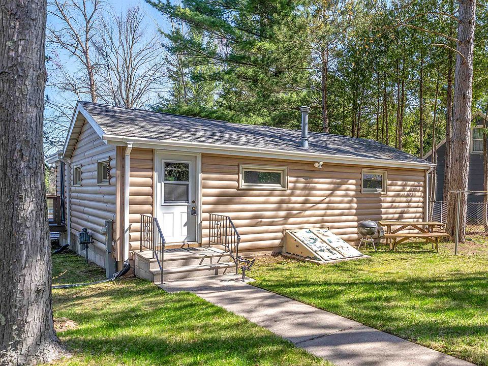Immaculate and move-in ready! This 2-bedroom, 1.5-bath home is ideally located adjacent to the coveted Cloverleaf Chain of Lakes featuring approximately 58+/- feet of sandy frontage on private, full-recreation Long Lake. Nestled on a wooded lot with brand-new steps leading down to the lake. Open concept floor plan with laminate floors throughout. Kitchen complete with breakfast bar and full appliance package. Primary bedroom with half bath. Full basement with tons of storage. Detached 1 car garage. This beautifully maintained property offers the perfect lakeside retreat. Take in stunning views from the deck and relax in your peaceful "Up North" escape—just under an hour from the Fox Cities! Buyer’s agent responsible for verifying room measurements.