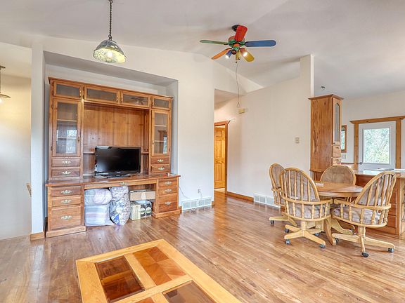 Enjoy beautiful views in this 2 bedroom, 1 bath home located on 4.23 acres. This cute home features hardwood floors & vaulted ceilings in living room. Open concept kitchen is equipped custom cabinetry. Capture natures beauty and wildlife on large 40x12 wrap around porch! Walk out lower level awaits your finishing touches! You won't be disappointed with the humungous 40x20 pole barn with attached 10x20 workshop. Land also features a natural spring. Call today for your private showing!