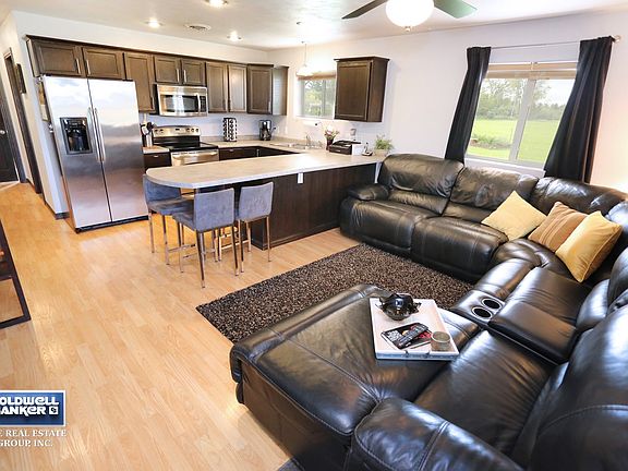 Situated on 4.97+/- acres is this unique home with workshop and 40x43 attached garage. This 2 Bedroom, 2 Bath home has tons to offer. Kitchen with snackbar and full appliance package, spacious living room and main floor laundry. Upstairs you will finds the master suite with a full bath and living room area and additional storage space. Outside find a plethora of wildlife to include your own chickens in a coop. This home has been pre-inspected and comes with a 1 year HMS home warranty. Move in Ready!