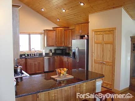 Custom built home, completed in July of 2008, featuring over 4000 Sq Ft of living area with many built in ammenities! The Master Bedroom features a nice sized walk-in closet, with a Jacuzzi Whirlpool tub and separate shower and double sinks in the master bathroom. Ceramic tile in the bathroom and Bamboo flooring in the bedroom. The master bedroom also has a 10' X 12' Deck overlooking the Lake. I affectionately refer to the Master Bedroom as the West Wing. The home was built with a Prowl Front to take advantage of the lake views to the Southeast and Southwest. Marvin Windows and Patio Doors throughout the whole house. Pine Tongue and Groove, end matched on the Vaulted Ceilings. We are especially proud of the Huge Kitchen that features Rustic Cherry Cabinets with Slow Close Drawers and Doors along with Granite Countertops, no expense was spared in the kitchen. One other feature is a huge walk-in pantry, you will not find a nicer kitchen in any other home. The home has heated floors in the Basement and the Garage with heating being done by an Outdoor Wood Boiler. There is an Amana Gas Furnace that could be the main source or the backup as it is used now. Central Vac, Central AC, 8 X 20 Covered Porch, Cement-Fiber Siding with a 25 year warranty, 30 X 40 detached Steel Sided Garage that could be finished and heated as well, 8 X 12 Office in the finished garage. Truely, every possible thing we could think of has been added to this home. We don't really want to sell, but our jobs have both taken us out of the immediate area and think we should live closer to where we work. Little Long Lake is a very quiet 112 acre lake with decent fishing and great swimming. Our property has about 210' of solid sand frontage. The elevation is very nice, not a steep drop to the lake. The views, peace and quietness, location ( 1 mile to town ), and basically no neighbors make this a very desireable property. We will be sad when it sells. We built this home and know it will be a wonderful home for it's new owners. It would be hard to re-build this home for the asking price alone, not even thinking about the land value. You won't be disappointed! Call today.Additional property info: http://www.forsalebyowner.com/listing/6HRGG?provider_id=28079