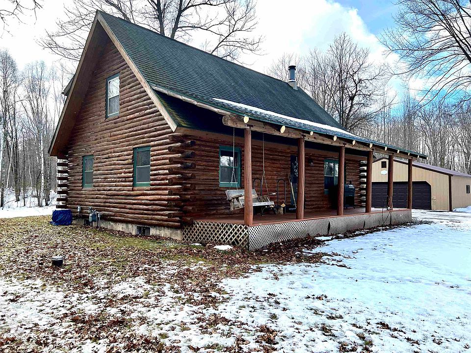 Imagine sitting on your log homes covered front porch swing overlooking your wooded yard watching the deer in the fields across the quiet country road! 4 Bedroom 1.5 bath sitting on 10 wooded acres. Fireplace, AC, 30x40 garage, stamped concrete fire pit area, blacktop drive. (LL bath will be finished by 2/25/23)