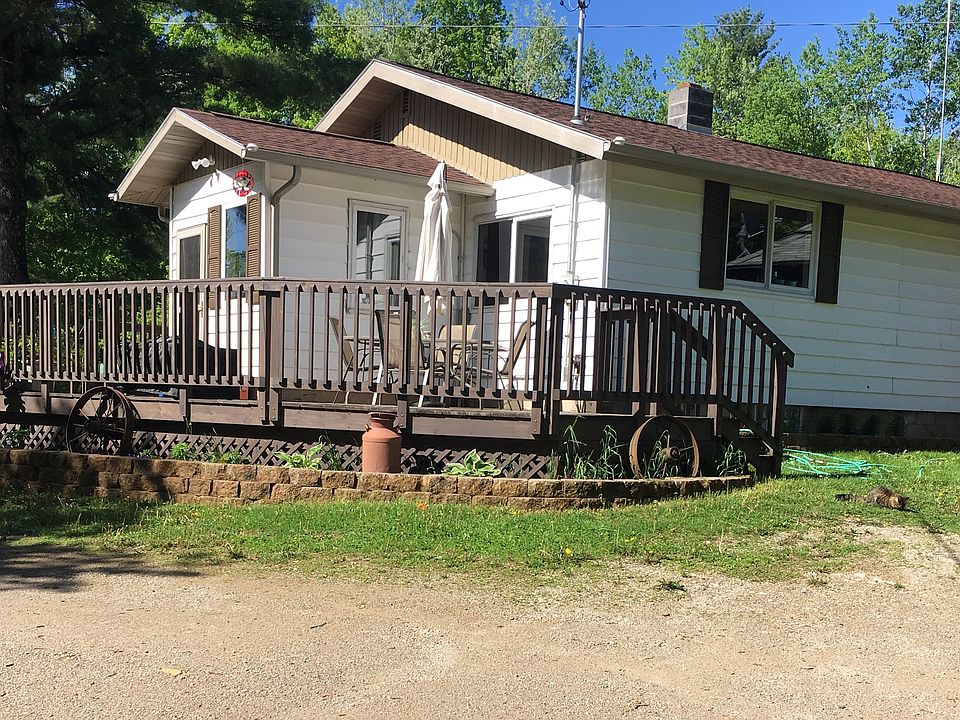 This beautiful, move in ready, home is located right next to 200+ acres of state hunting land, within a mile of 3 lakes, and about 5 miles from Shakey Lakes Campground. This house is move in ready. 3 bedroom, 1 bath, large kitchen area, dining room, living room. We have completely updated this home. New roof installed in 2011, completely insulated, new basement windows. Refinished ALL the floors, remodeled living room, added on a partial wrap around deck. The kitchen has a ton of storage and solid wood cupboards. Dining area is great for having guests. The master bedroom has two large closets and one of the other bedrooms has a large double wide closet. If you have a green thumb this property has a large garden, 100 ft by 60 ft, enclosed with chain-link fencing and a green house located on one end. Wood burning outside stove, allows us to only fill propane tank once a year! With a monthly budget of $15 for propane! Two car detached garage, with side stall for storage & chicken coupe, and back garage for storing all your extra's! A lean-to in the back provides coverage for wood pile. In the spring the property has beautiful blooms of lilacs and a flowering crab tree that will take your breathe away. Wild life is abundant in the area, and if you are a bird watcher the large windows in every room offer a great view! You would never believe how spacious this house is when you look at it from the outside. The basement has a large storage room with elevated floor. Washer and dryer are located in basement, however if you would want same level wash room, one bedroom could easily be converted. There is a root cellar located in basement to store your gardens yield. There is a nice fire pit located on property to enjoy the mild summer nights in the beautiful U.P. Back yard is large and spacious for plenty of outdoor play room for children. perfect place for pet owners, with state land there is a beautiful access road to take long scenic walks without the traffic to worry about.