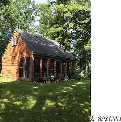 Escape to the woods, this property has a 22x24 cabin with a loft bedroom, an 8x24 screened porch, a finished bunk house. There are trails through-out the property with sitting areas, water frontage with a paddle boat included, a deep swimming hole, fire pit area. There is a little shower building and an outhouse. Close to many area lakes, hundreds of acres of Washburn County CFL.