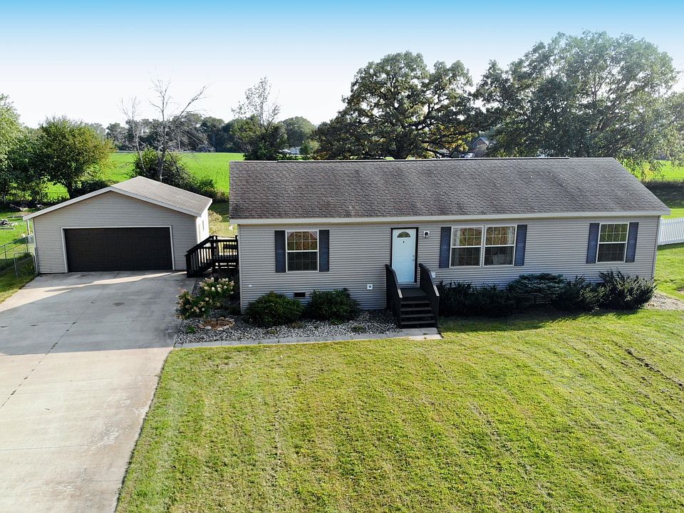 Enjoy one level living in this open-concept ranch situated on almost 1/2 acre! This inviting home features the sought-after split bedroom layout, a spacious kitchen with beautiful cherry cabinets, and a generous dining area. Unwind after a long day in the luxurious master bath garden tub, or entertain guests on the backyard patio in a completely fenced-in yard. The 2 car detached garage along with a bonus shed and large driveway offers plenty of room for all of your toys and vehicles. Home warranty included!