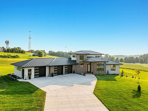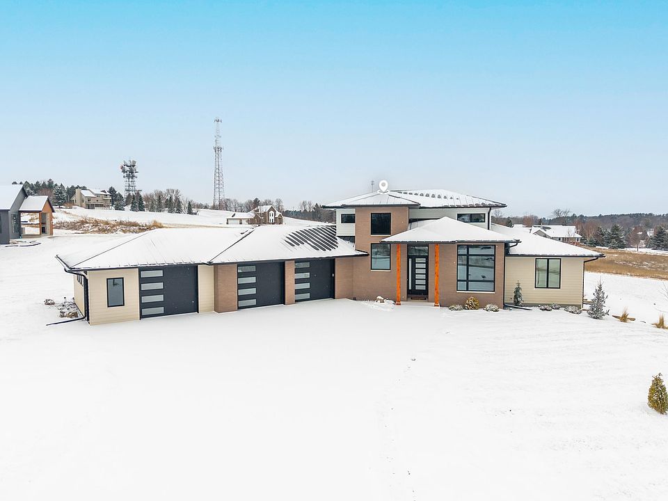 Modern Elegance Meets Peaceful Living in Hortonville. This better-than-new home delivers striking design and everyday comfort throughout. Genuine hickory hardwood floors run through the main level, while privacy-tinted windows provide abundant natural light without sacrificing seclusion. Both bathrooms offer a spa-like experience with heated tile floors and zero-entry showers. The chef-inspired kitchen features a massive quartz island, perfect for entertaining, and flows seamlessly into the living area with an integrated Sonos sound system. Step out to the covered patio to enjoy stunning sunsets and frequent wildlife views. A rare blend of modern style, privacy, and nature this exceptional home is one you won’t want to miss.