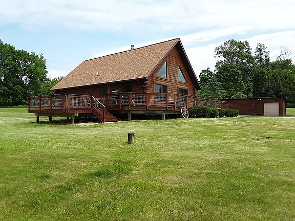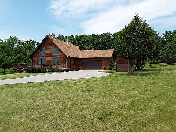 Log home on 11.25 acres - 9.5 wooded. Situated on two tax parcels. This home features 3 Bedrooms, 2 Full Bathrooms, Large 2 Car Garage, Lots of Storage. Wood Fireplace. Large wrap-around deck with new lower level. Unfinished full basement has loads of storage. 11 acres of woods/meadow. 1600 square feet. Private water/sewer. Forced Air/Central Air. Smart Home Technology. Security System. Whole House Back-up Generator. Dog Kennel. Large 2 Car Garage. Washer and Dryer. Dishwasher. Oversize whirlpool tub in main bath. Lake Mason is 3 miles away. Neighborhood Description: This is an opportunity to own some great hunting land with the rustic beauty that a log home brings you. There is a farm across the road, with a lot of surrounding woods with wildlife - deer, turkey, cranes, fox, birds. Great sunsets and very peaceful.