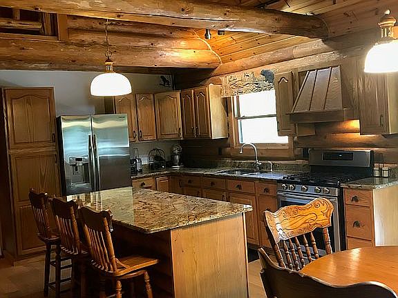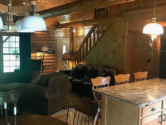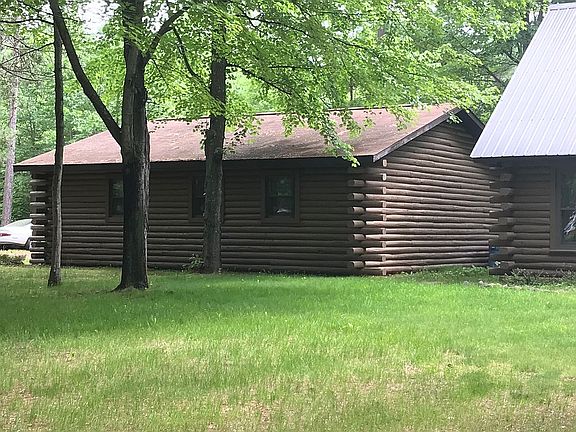 Full Cedar log home with views of Left Foot Lake. 3 Bedrooms, 2 bathrooms, open concept, Stone gas FP in open concept great room, amazing full logs in vaulted ceiling, main floor master bedroom & bath, granite countertops. Upstairs loft includes 2 large bedrooms and a bathroom. Lower level has large family room and a den-office or could be another bedroom. Detached garage includes a heated work room and the garage is insulated. Large 16 x 19 Deck for entertaining & covered front porch all on a quiet, peaceful dead end road.