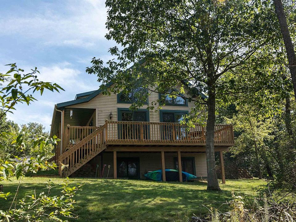 Are these items on your wish list: Waterfront home, 3BR, 2BA, open concept, wrap-around deck, covered porch, basement and quiet, wooded setting? If so, you just found your new place! This beautiful home on 70-acre Mud Lake comes furnished and has a no maintenance floating pier that doesn?t need to be adjusted for water levels nor removed in winter. Great room has a wall of windows and tongue & groove vaulted ceiling. Kitchen features high-end appliances & breakfast bar. Master bedroom, BA & laundry on main level. Open staircase to upper level 2BR & BA. Basement used as rec/bar area could be extra storage or finished to create your own space. Short walk to open lawn area & firepit overlooking the lake. Ready to enjoy as year-round home or vacation getaway. 30min from Wis Dells.