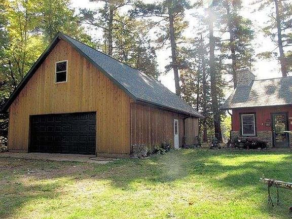 Three bedroom, two bath inviting Ranch style open concept home on big lakefront lot. The look and feel of a Northern Lake Cottage with its log beamed ceilings, knotty pine interior and massive fieldstone wood burning fireplace - except with all the modern amenities. Brand new Maple kitchen cabinets with Granite countertops and large island. New Maytag dishwasher, Microwave, SS Range & Refrigerator included. Other newer updates were windows, roofing, bathroom, furnace and 200 amp electrical service. Large lakeside screened porch for relaxing in comfort. One car attached garage. Detached 28'x 40' MANCAVE garage(2009) with in-floor heat and 16'x 35' loft. Privacy is what you get with over 1 acre of land full of whispering White Pines and 175' lakefront. No visibility to neighbors to speak of. Upper & Lower Post Lake have 1,136 acres of all recreational water plus boating and fishing 2 miles on Wolf River. 3 friendly pit stops on the lakes with boat docking. ATV & Snowmobile trails.