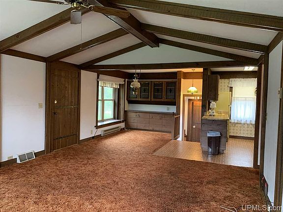 Breitung Twp. on 2.75 acres. Newer windows, heavy original doors, "old world" style, vaulted ceiling in living room w/exposed beams. Open concept with views of wild life out your front door. Finished family room in basement with ½ bath, legal egress exit, and workshop. 2+ car garage, partially wooded, great garden area, all in a private location yet minutes from town!