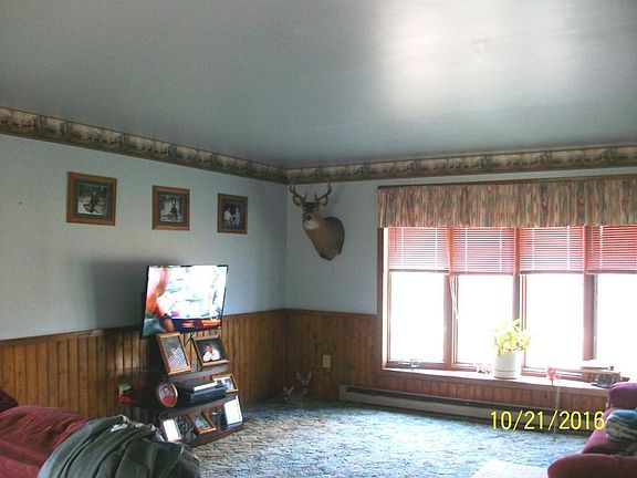 YOUR VERY OWN HUNTING GET AWAY!! 3 bedroom, 1 bath home situated on 36 acres of hunting land, featuring a nice size living room with large bow window, combination kitchen/dining room with snack bar & patio doors to a back yard deck, full basement with large finished family room, central air, a 63 x 36 (21/2 car) detached pole building & another 44 x 26 outbuilding. CLOSE TO SHAKEY LAKES PARK, PUBLIC LAKES & 1000'S OF ACRES OF STATE LAND!!