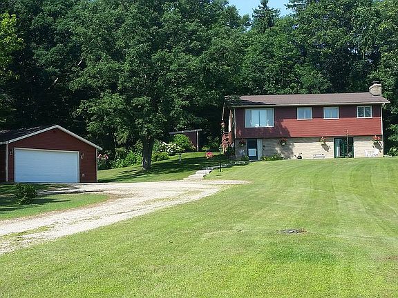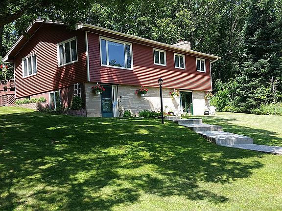 Vinyl siding added in 2017; Walkout finished basement with a fieldstone fireplace in the family room; 2 additional rooms in basement could be used for bedrooms or office space; many windows, with a lot of sunlight. Big front yard. There's also a 6' X 8' shed, and a 36' X 48' pole building with propane AND wood heating. Located just outside of town; would be great for a small business; many possibilities.