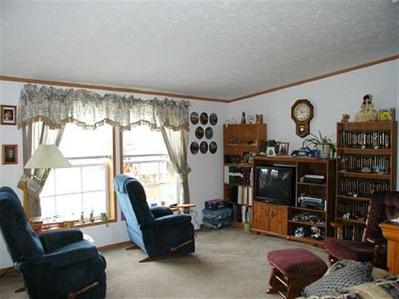 Country 3BD 2BA one level home on 4.4 acres. Beautiful interior, high ceilings, electric fireplace. Oak kitchen cabinets, work island, 3 decks, main level laundry/mud room, corner garden bathtub, plus shower, patio door to back door deck. Good mixture of soft & hard woods. Home is 6 years old. 28 X 32ft garage has 12' overhand. Detached 12 X 18 garage/storage shed. Move to the country. Affordable and nice!!