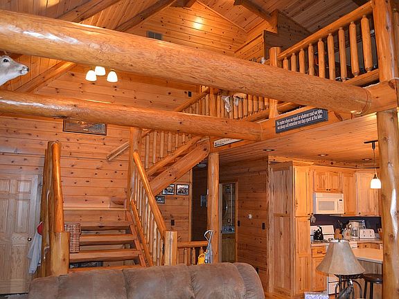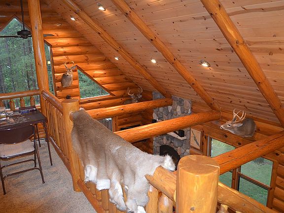 This majestic full log, custom home offers you all the privacy and tranquility one could want along with the beauty of a hidden gem on gorgeous Somo Lake. The hand hewn logs and huge collar tie beams along with pine ceiling make for a warm and inviting place to entertain all of your family and friends. The site is among gigantic pines along with mixed hardwoods offering breathtaking views down Somo Lake. Located on a peninsula you will find water on two sides of this picturesque home. Enjoy 2866 square feet of finished living space, including four bedrooms, three full bathrooms and a fully finished walkout basement. The main floor features an open floor plan with awe inspiring views of the lake from the great room with a huge wood burning fireplace. Open kitchen with large island and adjacent dining space. A big bonus is the screen porch off the kitchen where you will want to spend the morning or evening hours enjoying this, exquisite property. There is also a huge deck overlooking the lake. There are two bedrooms on the main level along with a full bath and laundry area. The handmade log staircase leading to the upper level is sure to impress. The open area of the loft offers a study / library space along with enough room for several beds. The private master suite is gigantic with a large walk-in closet and large bathroom with shower and a soaker tub with an impressive view overlooking the lake. The lower level features a large entertaining space along with a bar and a huge “bunk room'' with space for three or four sets of bunk beds or several full or queen beds. The basement walks out to your beautiful fire pit area that has a view anyone will love. The two car detached garage matches the home with its log siding. This building will give you plenty of space to store all your belongings and water toys.