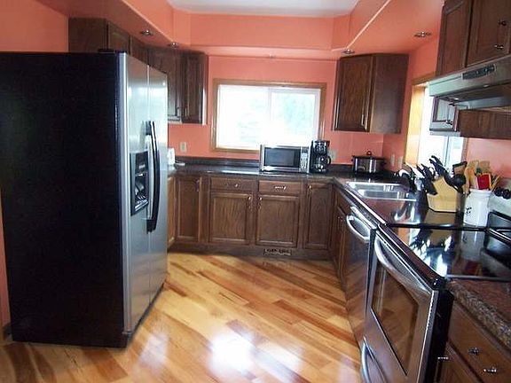 Country home with many updates to include new kitchen, new furnace, new hot water heater, new wiring, new windows, and new gutters. The kitchen and dining room have beautiful Hickory flooring. Home offer main level with kitchen, dining room, living room, office and full bath. Upper level having 2 nice size bedrooms. There is a detached 2 car garage, and 32x48 pole building that is heated and insulated, property is on 4.5 acre parcel.