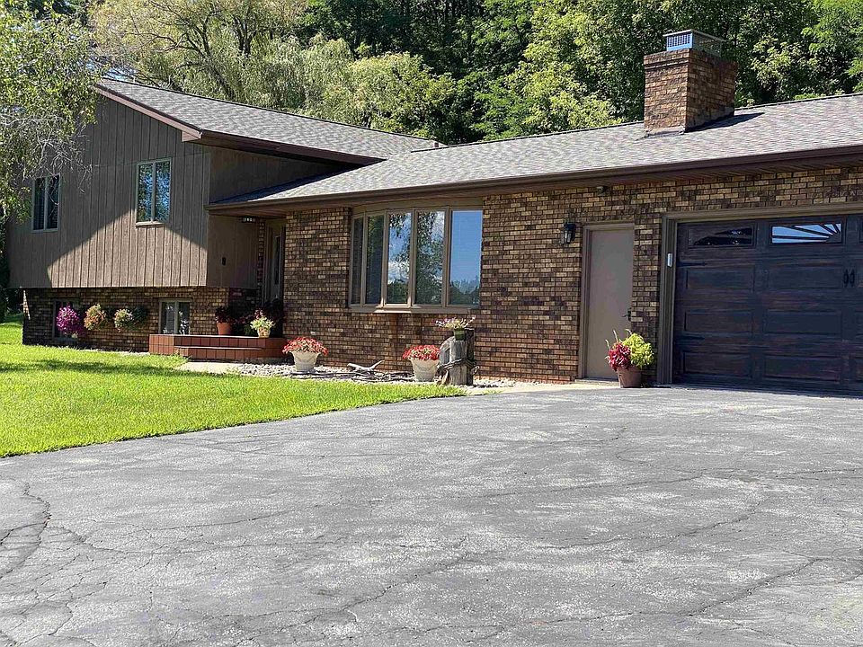 Feel right at home in this multi-level 3 bed, 2 bath house tucked into the wooded country hillside between Mauston and Elroy, sitting on almost 3 acres. 26x30 pole shed w/16ft door and 10ft addition to accommodate a motor home. Relax outdoors on your stamped concrete patio by the woods, or inside by one of 2 fireplaces. Nicely updated and features fully, finished basement with family room, fireplace, wet bar, exercise and game room with a pool table. Perfect for entertaining! New roof in 2021, tankless water heater, granite in bathrooms and bar, and peaceful views of the countryside.