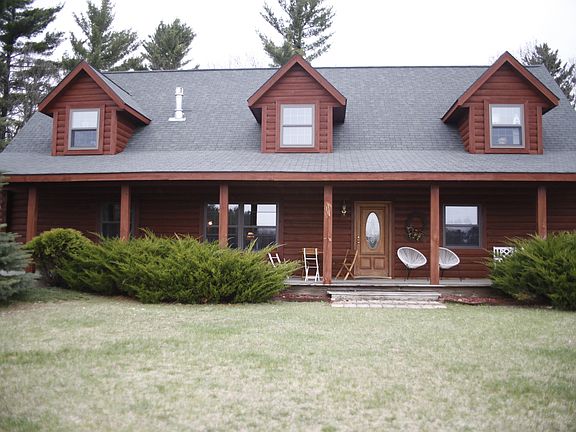 Outdoor lover's dream! Beautiful 5+ Bedroom, 3 full bath Log home with 3 car garage and 45 X 60 pole building with cement floor. The full wrap around porch is a great place to hang out with your morning coffee. There is an outdoor wood furnace that will heat your home all winter long, as well as an awesome fieldstone fireplace for your enjoyment on those chilly winter nights. 142 PRIME acres of open fields used for food plots attract wildlife for your viewing pleasure! Also, a ton of great woods made up of mixed hardwoods and pines. This land has a mixture of hilly and flat areas, awesome for recreational (4 wheeling) or just nature walking. If you really appreciate nature, you will not find a nicer property. Indoor pictures to be available soon, as new granite counters are being installed as we speak.