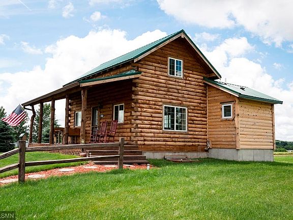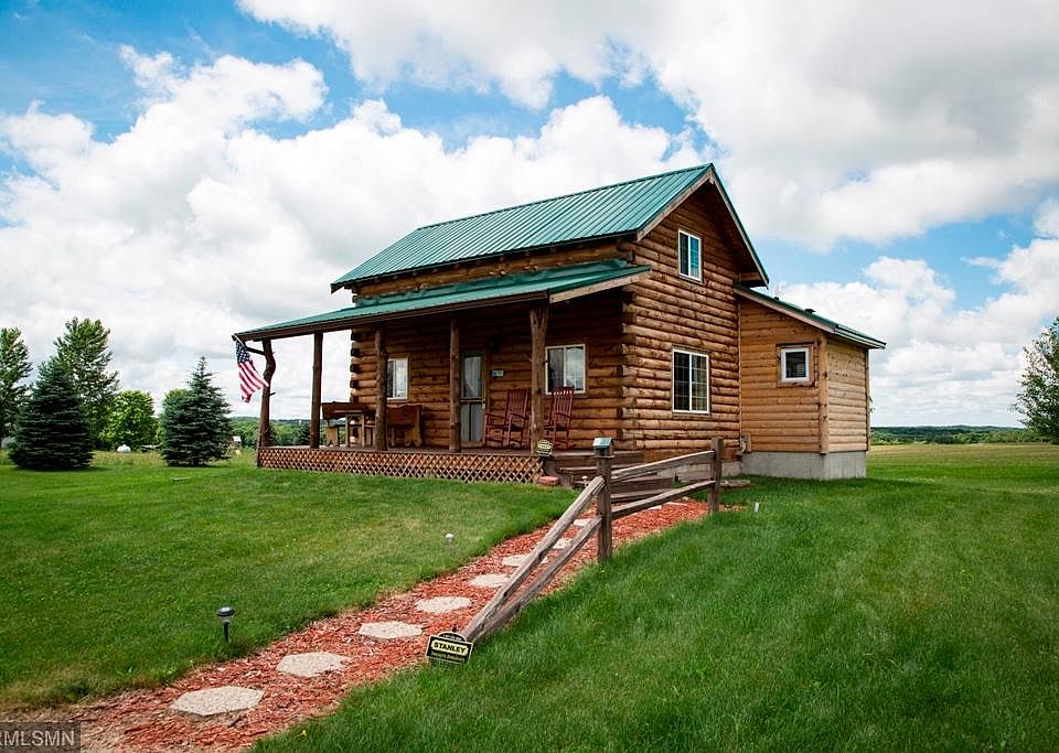 This beautiful Amish built log home on over 8 acres can be lived in year 'round or would make a great vacation home or studio. Right next to the Eau Galle Recreation Area and all of the fun available there! The main level is completely open with kitchen, dining area, and living room. The loft is currently used as a bedroom, and there is a lower level bedroom with egress window. You will enjoy the covered front porch for evenings outside entertaining.