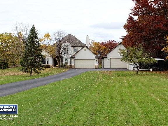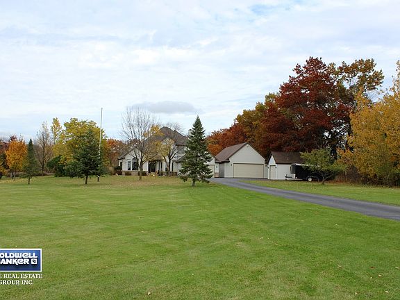 Enjoy Country Living! This 4 bedroom 2 1/2 bath home sits on 4.78 wooded lot. Step inside and you will be greeted with a grand foyer, with a formal living room, Spacious kitchen with maple cabinetry open to the breakfast area and family room with a wood burning fireplace flanked with stone. Master suite is on the upper level along with 2 other bedrooms. The 4th bedroom is on the main floor or could be used as a home office. There is a 26x46 detached garage along with another 12x16 utility garage.