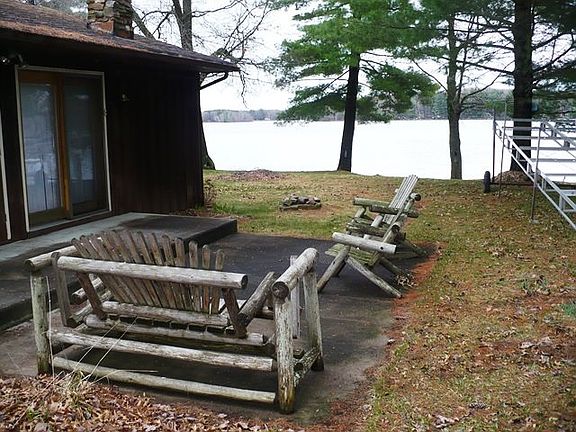 With an awesome view of the lake from the kitchen, dining and living area this 4 bedroom 2 bathroom waterfront home has room for everybody. Attached is a 3 car garage to store all the toys you will need to enjoy the great fishing, boating and hunting (borders a thousand acres of county forest) this recreational area offers. A beautiful fireplace, newer furnace and many updates are just a few features this home offers plus most of the personal property is included. Priced below assessed value.2002 like new 18' pontoon, trailer and 40hp motor is available