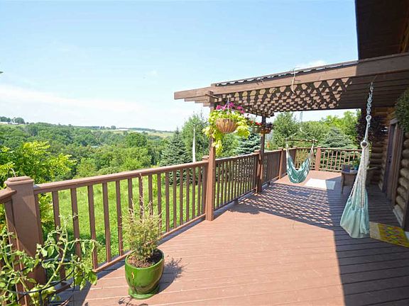 Stunning Full Log Home with breathtaking views of the valley below await you. Enjoy the 22 acres of prairie and woods. Entertaining options are endless in this home as the great room and kitchen surround a massive Fireplace and overlook the valley below. The Deck, Gazebo and hot tub will make those summer and winter evenings so relaxing. Large finished basement w/walk out to Hot Tub. If you want a private oasis that is away from the noise of the city yet not too far, this Home is for you. Deer, turkeys, song birds and tons of wildlife abound. Hurry don't miss your chance at a piece of paradise!