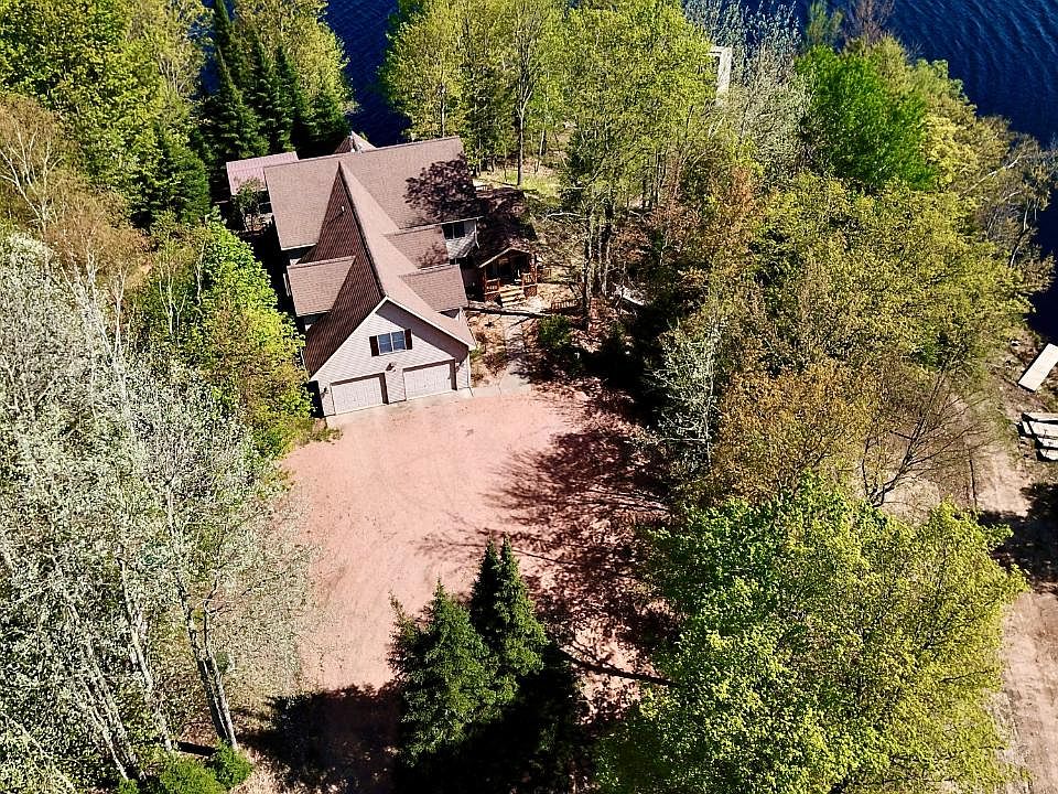 This fully furnished Butternut Lake home has a whole lot of everything! With even the pontoon boat and motor included, you can pack your bag and settle in. This hilltop gem has breathtaking views and loads of room to gather. Outside space includes 2 lakeside decks and a hammock by the pond, 3 season room and steps to two lakeside sitting areas, each with a dock, and one with a lakeside fire pit and boat house. Once inside, you can relax in the Sunroom or cozy up by the fire in the Great Room. The spacious kitchen has upgraded appliances, a wine fridge, and an island. The main bedroom has a balcony, and there is an open/loft that can be used as as a guest bedroom or office, along with a spacious 27x26 bunkroom for guests. The lower level walk out has a family room and 2 spacious bonus rooms. This lot offers direct access to ATV and snowmobile trails, you can boat to the local eateries, and you're minutes from downtown Park Falls and Butternut! Put this on your MUST SEE LIST!