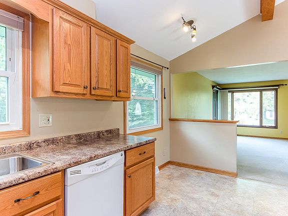 This lovingly maintained home is surrounded by 1.5 beautiful acres. The skylights and vaulted ceiling in the remodeled kitchen and dining room give an open and airy feel to the main living areas, while hardwood floors and 6 panel doors bring a touch of warmth. Sliders from the dining room lead to the patio, overlooking the lovely yard, with Rainbow play system. In addition to the attached garage, is the hobbyist or home business dream, a 50x22 detached, heated building with 2 overhead doors, and storage cabinetry included.