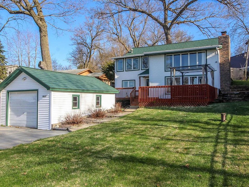 Affordable lakefront property on Lake Ripley with stunning views from spacious deck w/pergola or from interior walls of windows. Competitive price reflects cosmetic updates that may be desired by future buyers. Swimmable frontage with gradual increase in depth. Main level FR w/wood burning fireplace open to kitchen with breakfast bar/wet bar. Two additional rooms off kitchen could be mudroom, pantry &/or used for storage. All bedrooms are located on upper level, including formal LR & additional room for dining &/or an office w/patio door to backyard. Updates include new furnace & water softener 2017; metal roof 2014; newer appliances & fenced yard. Close to Lake Ripley Park, schools, shopping and everything charming Cambridge has to offer. Let the summer fun begin!