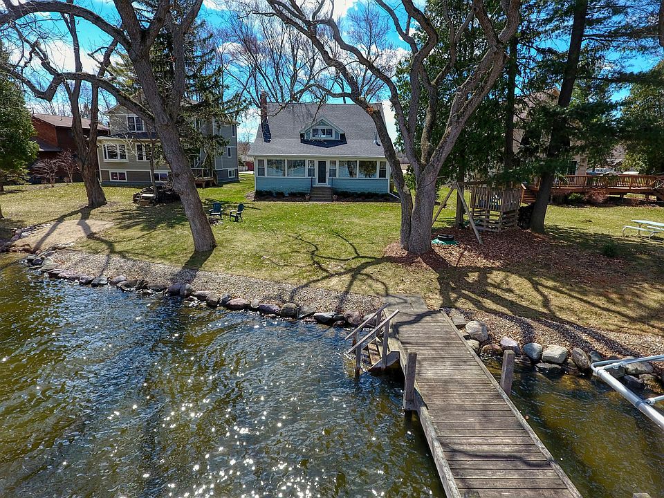Classic lake cottage maintains the original charm of 1926 with features like original cabinetry, unpainted woodwork, and a vintage Kohler farm sink. Yet it has modern updates including roof, and mechanicals like furnace, A/C, water softener, and iron filter! The ''attic'' remodel about 6 years ago offers flexible space to fit your needs...currently used as a bunk room / family / rec room and it has a full bath and walk-in closet. Could be master suite complete with lake views. Great property to use year round or as a second home. Lots of storage with full basement (laundry in LL), garage with attached potting shed plus an additional garden shed. Nice rock shoreline with 79 ft. of frontage and sandy / gravel bottom. Make this inviting yours in time for summer!