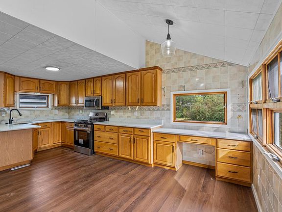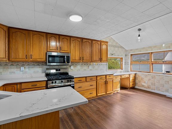 Two-car garageStylish stone countersDeep lotSpacious kitchenAmple bedroomsAbundant cabinetrySizeable dinette