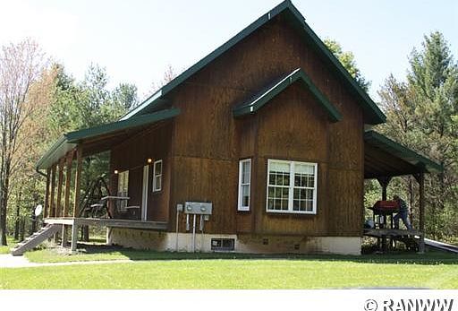 Don't judge this one by the cover. Must See Inside! 1.5 story house on wooded 6.94 acres. Knotty pine walls & ceiling with log stairway to a 24 x 18 loft, 2 kitchens, 2 bdrms, 2 baths & 2 covered porches. Recessed lighting.