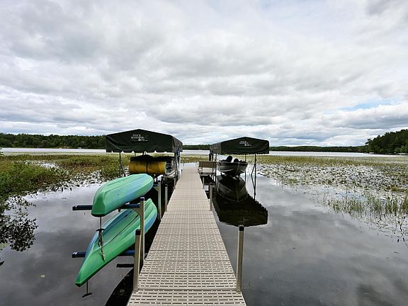 Discover a rare Northwoods retreat on 25 wooded acres with 1,567 feet of frontage on Lower McKenzie Lake. This beautifully crafted log-style chalet offers 4 bedrooms and 3 baths, featuring exposed log beams, a soaring great room with a stunning stone wood-burning fireplace, and a loft that overlooks the living space. The master suite in the loft provides a private escape, while the spacious finished lower level is perfect for guests and gatherings. Step outside to a rebuilt deck and railing that showcase panoramic views of the lake and surrounding forest. With abundant privacy, this property is bordered by Washburn County forest land—ensuring endless opportunities for recreation right out your back door. Hunt, fish, boat, and explore the northwoods, all from your own property. This is more than a cabin—it’s a once-in-a-lifetime setting that combines acreage, water frontage, and Northwoods lifestyle in one exceptional offering.