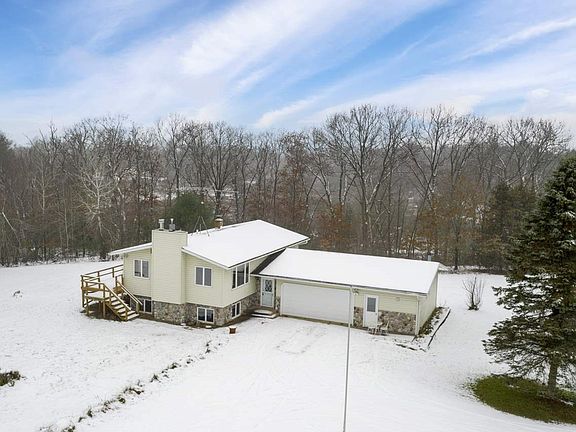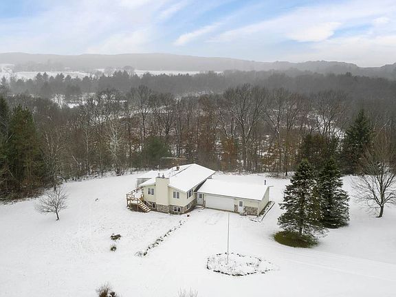 Welcome to the country! This well maintained home is nestled on 5 plus acres with 2 additional storage sheds for all your toys and gardening equipment. Not 1 but 2 gas fireplaces to cozy up to with your book on those long winter nights. Gleaming hardwood floors. Deck provides extra room for entertaining and enjoying the views while sipping your morning coffee. Easily add a 3rd bedroom on the lower level to make this home a 3 bedroom sanctuary.